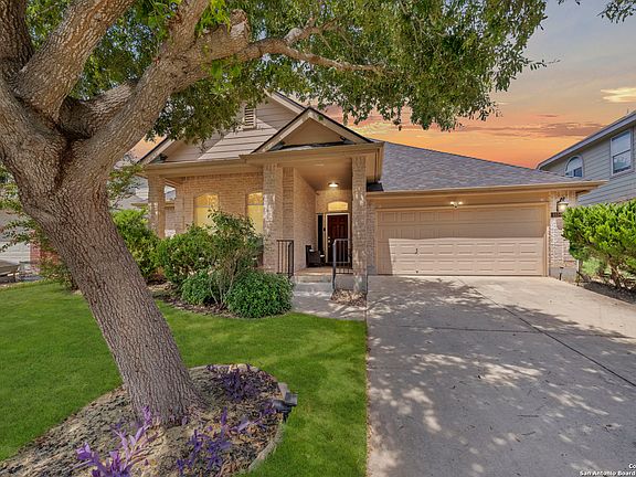 Elevated living in this beautifully appointed 4-bedroom, 3.5-bath residence featuring a saltwater pool and solar panels, all nestled in Miramar subdivision. Elegant formal dining area, and a spacious living room anchored by a warm fireplace perfect for stylish entertaining and cozy evenings alike. The kitchen features granite countertops, a tasteful tile backsplash, and a sunlit breakfast nook. The first-floor primary suite offers a private retreat with an en-suite bath featuring a jacuzzi tub, glass-enclosed shower, dual vanities, and walk-in closet. Upstairs, a sprawling loft provides the perfect space for a game room, media room, or guest suite, complete with a bedroom and full bath for added privacy and convenience. Step outside to your personal oasis a covered patio overlooks the glistening saltwater pool, surrounded by a privacy-fenced backyard ideal for unwinding or entertaining in style. Additional upgrades include a 30-year roof, refinished pool with upgraded filtration system, and a new water softener, ensuring comfort and peace of mind. Situated minutes from premier shopping at The Forum at Olympia Parkway, IKEA, Randolph AFB, and just a short commute to Fort Sam Houston, this exceptional home blends functionality and location, an opportunity not to be missed!