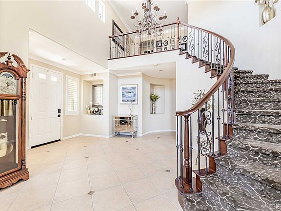 GORGEOUS South Corona Montecito Ranch Home, Ready to move in, Turn Key. GREAT LOCATION. LOW HOA's and LOW taxes. This BEAUTIFUL Home is near Dos Logos and is located at the foot of the Cleveland National Forest with Orange Groves and Avocado Trees. This home is the favorite plan 1 in our community. Corner lot featuring a 3 car Tandem Garage and a Courtyard. The entry has a Dramatic ELEGANT Spiral wrought iron Staircase. Featuring a Large Open floor plan, Spacious Granite Kitchen with a breakfast bar, newer appliances, walk in Pantry & Double Ovens. LARGE GREAT ROOM with fireplace, Upgraded flooring and neutral paint. Downstairs bedroom with a private bathroom. Formal separate Living Room and Dining for your entertaining needs and a powder room for guests. EXTRA LARGE PRIMARY BEDROOM SUITE WITH RETREAT & Fireplace that leads to the balcony to enjoy the Beautiful Mountain views. Primary features his and hers separate walk-in closets. Primary bath has Jetted Tub, dual sinks & separate Vanity area. LARGE-SIZE BEDROOMS with Jack & Jill Bathroom. Upstairs Laundry includes a sink. Backyard has 2 patio's, storage shed and fruit trees: orange, peach, guava, green apples, fig, pomegranate, persimmons, loquats and grapevines. Nearby park with basketball & baseball diamond. Top Rated Elementary School in the District. Nearby parks with playground, basketball and baseball diamond. THIS HOME IS A MUST SEE, MUST HAVE! Gorgeous ! Very well taken care of, will not disappoint. CLEAN,CLEAN, CLEAN. Perfect for extended family such as Grandparents or Nanny to live downstairs.
