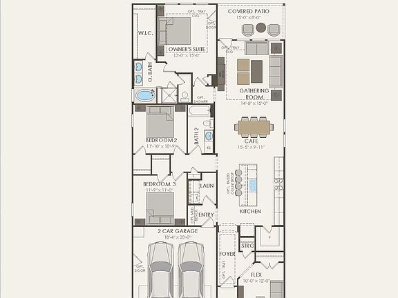 February 2026 completion. The Fox Hollow plan at Two Step Farm by Pulte is a single-story home with about 1,846 square feet of living space. It includes 3 bedrooms, 2 bathrooms, and a 2-car garage. Notable features include an open island kitchen, walk-in closets in all bedrooms, and the option to convert flexible living space into a fourth bedroom. The layout is designed to balance everyday comfort and entertaining, with the kitchen overlooking the café and gathering room.