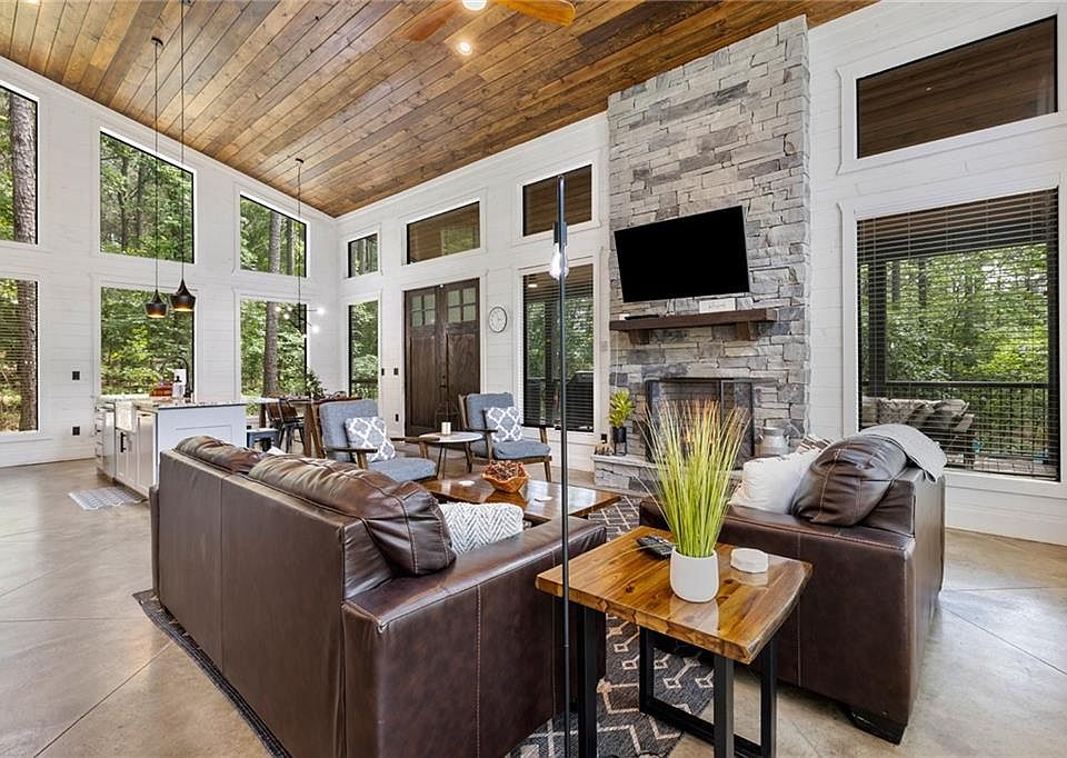 Idle Bliss is a fabulous 2 bedroom cabin located in the central part of Hochatown! Great curb appeal and tucked back in the towering pine trees, this cabin is a highly sought after floor plan and design. Elegantly decorated and cozy porches with space surrounding the property creates the perfect getaway! As you enter the front door, Idle Bliss has a welcoming open living, kitchen and dining area that flows outdoors to a spacious covered deck with an outdoor fireplace, great for entertaining or enjoying a quiet evening. The large master bedrooms with private bathrooms provide an enjoyable space for short or extended stays. This property is located conveniently off of Hwy 259 on Camp Ranch rd. Easy to find and only minutes from Broken Bow Lake, Beavers Bend State Park, Hochatime and all area restaurants and attractions.