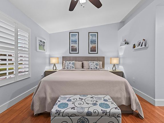 Welcome home to this meticulously maintained and beautifully remodeled 3-bedroom, 2.5-bath townhome with 1,398 sq ft in the safe, gated community of Boca Quay. Step into the elegantly updated kitchen featuring waterfall quartz countertops, white shaker cabinetry, high hat lighting, and matching Samsung appliances including a brand-new refrigerator. Enjoy tile flooring downstairs and real wood floors upstairs, vaulted ceilings in bedrooms, plantation shutters, custom built-in closets, and additional attic storage. Hurricane windows throughout provide peace of mind, along with a tankless water heater and brand-new A/C. Relax on your serene marble patio and enjoy a 1-car garage with a new garage door opener system. Community amenities include a pool, guest boat dock on the Intracoastal, and paddleboard launch. Prime location east of Federal Hwy with easy access to I-95, minutes to Downtown Boca Raton & Delray Beach, great shopping, and top-rated schools.