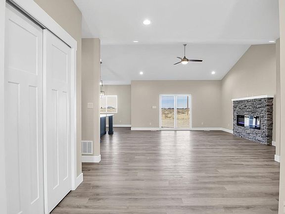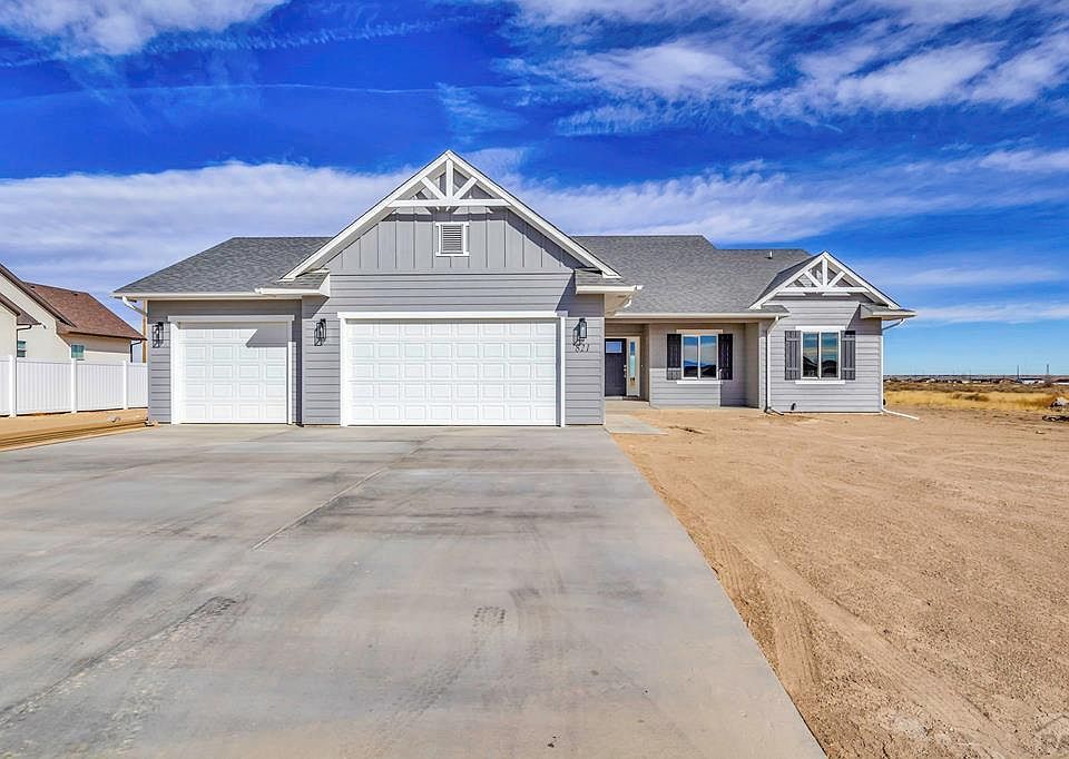 New, quality construction with all of the bells and whistles! Great one-level living with contemporary styling and low-maintenance features. 3 spacious bedrooms, 2 1/2 baths and attached 3-car garage make this home ideal for everyone! The delightful kitchen features recessed lighting, granite counter tops and a large pantry. The primary suite includes an adjoining 5 piece bath and an ample walk-in closet. Added bonus? Large covered rear patio will provide shade and protection to enjoy all the good Colorado climate affords. Pictures are of a similar home, colors and finishes may vary, this home will have warm tones. Estimated completion February 2026.