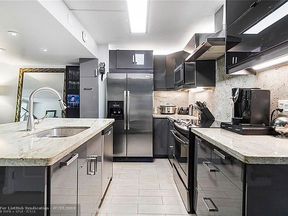 TALK ABOUT A BEAUTY!!!! LOVELY CORNER UNIT THATâS TASTEFULLY REMODELED WITH ALL KINDS OF UPGRADES: NEW KITCHEN AND BATHS, NEW FLOORING THROUGHOUT, SS APPLIANCES, MODERN STAIRCASE AND RAILINGS, RETRACTABLE FROSTED WALL IN SECOND BEDROOM TO OPEN UP SPACE, MOTORIZED SHADES, IMPACT WINDOWS, PAVED COURTYARD ETC, ETC AND ETC. MINUTES FROM ALL THE ACTION IN WILTON MANORS, DOGS ALLOWED