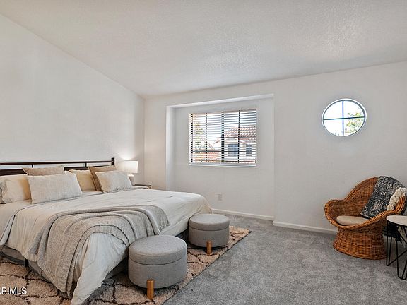 Discover effortless living in the desirable gated community of Camarillo Springs. This beautifully maintained 3-bedroom, 3-bath townhome offers an ideal layout with a full bedroom and bathroom conveniently located on the main level—perfect for guests, multigenerational living, or a home office. The bright kitchen features granite countertops and overlooks the inviting dining and living areas, which open to a private patio ideal for relaxing or entertaining. Upstairs, you'll find dual primary bedrooms, each with an en-suite bath, along with a spacious landing area offering built-in storage cabinets for added convenience. The attached 2-car garage provides direct access and ample storage. Residents of this sought-after community enjoy secure gated entry, a sparkling pool and spa, and a clubhouse for gatherings. Surrounded by scenic hillsides yet just minutes to shopping, dining, golf, and the beach, this home blends comfort, privacy, and coastal accessibility. Perfect as a full-time residence or serene weekend retreat, this is Camarillo Springs living at its finest.