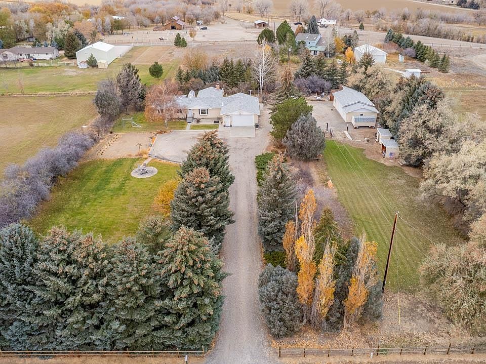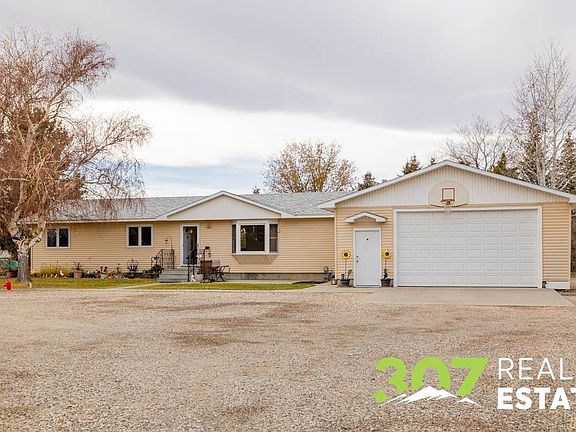 Enjoy the Wyoming views and room to roam on this versatile 4 acre Powell property. The home offers a comfortable layout with 3 bedrooms, 2 bathrooms, including a bath with a walk-in jetted tub and there is an efficient central kitchen with a breakfast bar. A designated dining area flows easily into both the living room and family room, where a beautiful rock fireplace crafted with rocks gathered from the surrounding area creates a striking focal point. A separate recreational room with a pool table adds to the generous interior spaces. The extra-large heated two-car garage provides exceptional convenience. Outside, a second heated detached garage features two additional stalls, a hobby/workroom area, and off the back there is a walk-in cooler and space designed for processing harvested game or other uses. Off the rear of the home, a freshly re-stained deck leads to a large 17’ × 25’ above-ground swimming pool; a nearby shed houses the pool equipment. The property is thoughtfully laid out to offer privacy, with a huge amount of trees and shrubs throughout. A large garden space for the green thumb. Two fenced open pasture areas are ideal for animals and include two small loafing sheds. Additional features include a storage area for hay or firewood, a separate 128 sq. ft. storage building, and a dog kennel. There are numerous improvements and extras across this property, ask for the full list available to serious buyers.