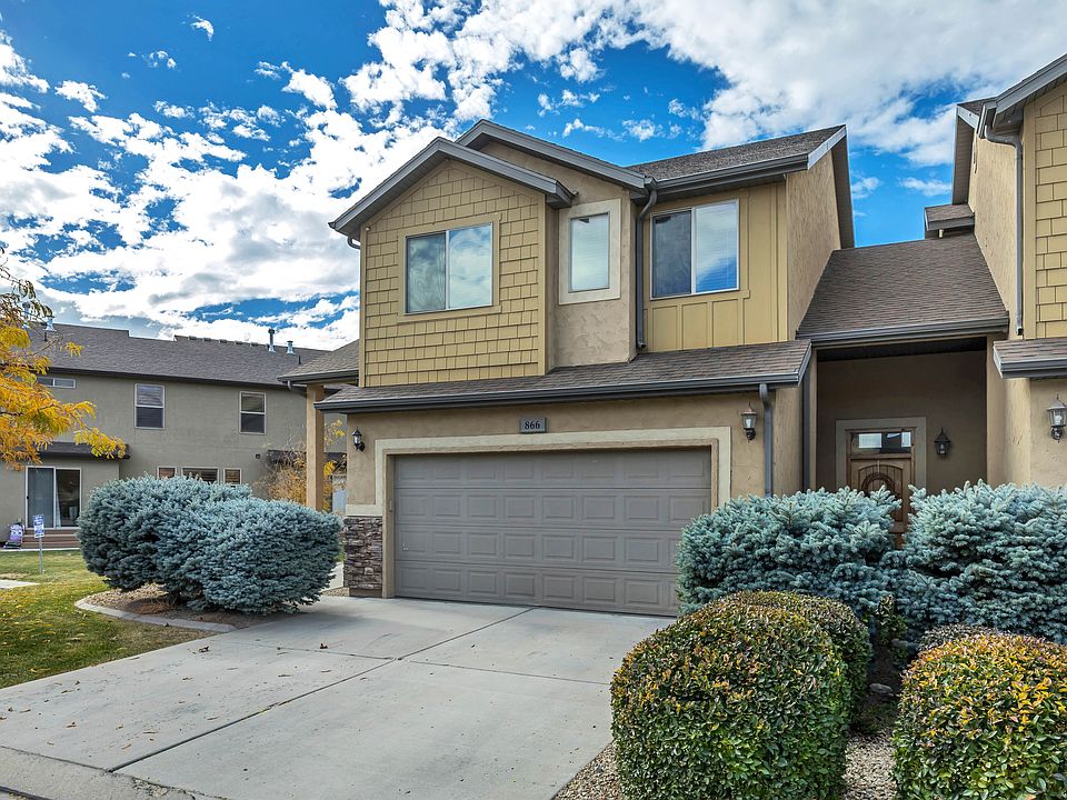 Beautiful end-unit corner townhouse with several upgrades. The kitchen has granite countertops, a stainless-steel sink, and travertine floors. Carpet was recently replaced and upgraded. The home also features upgraded hardwood doors and trim throughout. The front living room includes a built-in electric fireplace. The large primary bedroom has double sinks, a jetted tub, a separate shower, and a walk-in closet. Great location next to Sleepy Ridge Golf Course and only minutes from the freeway and new Frontrunner station. The dining room opens to a patio and small garden area. Three visitor parking spots are conveniently located right next to the home. Clean, well-kept, and move-in ready. Don't miss it!