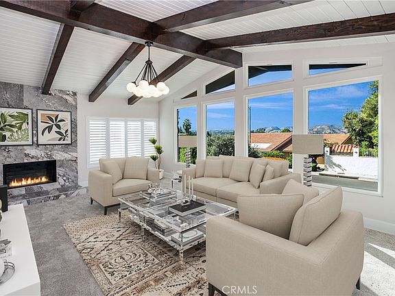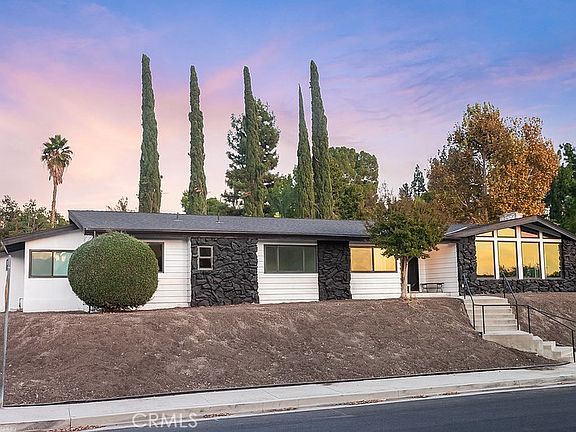 REMODELED WEST HILLS entertainer’s POOL home on a HUGE 12,102 sq. ft. CORNER LOT with VIEWS of the hillsides, mountains, treetops and SUNSETS. Freshly painted interior. Frameless double glass doors open to a formal living room with a wall of picture windows that frame impressive views and sunsets; plus, soaring beamed ceilings, new plantation shutters, floor-to-ceiling fireplace with new marble surround and plush new carpet.  Remodeled kitchen with new plantation shutters, recessed lights, farmhouse style light fixtures, crown molding, white cabinetry, quartz countertops, chevron tiled backsplash, dual basin apron sink, stainless-steel appliances which include a ZLINE 6-burner gas cooktop with ventilation hood, microwave oven drawer, Samsung built-in double oven and dishwasher. Butler’s pantry with crown molding, recessed lights, white cabinetry, quartz countertops, full backsplash and vessel bowl basin. Formal dining room with picture windows that showcase the skyline views, new plantation shutters, crown molding, new wainscoting and travertine floors. Family room with a multitude of windows flanked by new plantation shutters, crown molding, recessed lights, drop down farmhouse lighting, built-in Grillmaster® barbecue, travertine tiled floors and sliding glass doors. Primary suite with gleaming windows, new plantation shutters, crown molding, recessed lights, lighted ceiling fan, walk-in closet, sitting area and travertine floors; plus, a remodeled private en suite bathroom with sliding farmhouse barn door, recessed and designer lights, marble walls, dual basin vanity, two-person glass-enclosed step-in shower with marble walls, custom tiled floor, separate dual adjustable shower heads, dual rain showerheads, sliding doors that lead to the backyard. 3 additional bright and airy bedrooms with new plantation shutters, crown molding, recessed lights, lighted ceiling fans and walk-in closets. Remodeled Jack-and-Jill bathroom with crown molding, recessed and designer lighting, farmhouse dual vanity with apron front basins, linen storage, subway tiled glass enclosed tub/shower and commode with bidet. Remodeled guest bathroom with crown molding, recessed lights, white vanity with dual vessel bowl basins, privacy area with tiled tub/shower and commode with bidet. Hallway with new wainscoting and linen storage. Newer roof. Private backyard with newer sparkling in-ground pool and relaxing patio with firepit.