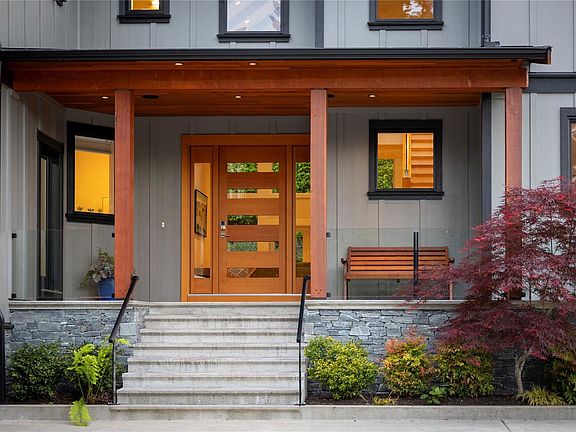 This Ryan Hoyt Custom Design embodies contemporary sophistication on a .4 acre lot in beautiful Dean Park. A spacious light-filled living room features striking vaulted ceiling, expansive window wall and Douglas fir elements. Open-concept dining is perfect for hosting large gatherings. The kitchen delights with sleek gloss-white & rift-cut oak cabinetry, waterfall island, & custom nook. The main level provides an office, guest bedroom, music room, chic mudroom, & 3-pc bath. Above, the primary suite offers a lavish ensuite & walk-in while separate wing provides 2 more bedrooms with walk-ins & 4-pc bath. Legal, separate suite above garage with private entrance. The grounds impress with extensive stonework, low-maintenance landscape, accessible entry patio, fountain, fire pit, & deluxe garden shed. Four garages + RV port + extensive parking. Nestled in a coveted community near beaches, parks, recreation, amenities, and more. Here You will find the epitome of exclusive executive living!
