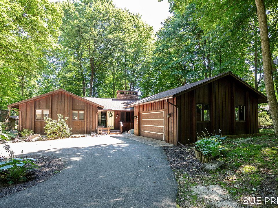 Spacious Mid Century ranch home located on nearly 1 acre cul-de-sac wooded lot offering privacy! Uniquely designed home w/ quality & functionality. So much to appreciate about this home; nearly 3600 TFLA, updated landscaping in 2022, new furnace, A/C, & roof in 2021. Pella windows, 2 wood log fireplaces (1 w/ Heatilator), central vac & attic fan. Primary BDR has ensuite. Lower level has a huge entertainment area, separate family room, full kitchen w/ eating area, & 1/2 bath. Ample storage throughout & custom pantry. Exterior offers a tranquil setting, beautiful perennial plants, stamped concrete walkway, including a covered porch for enjoyment & custom built storage shed. Prime location. Walking distance to many amenities. Seller directs LA to hold all offers until 11am Tues July 2nd