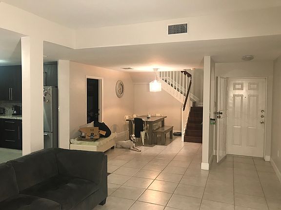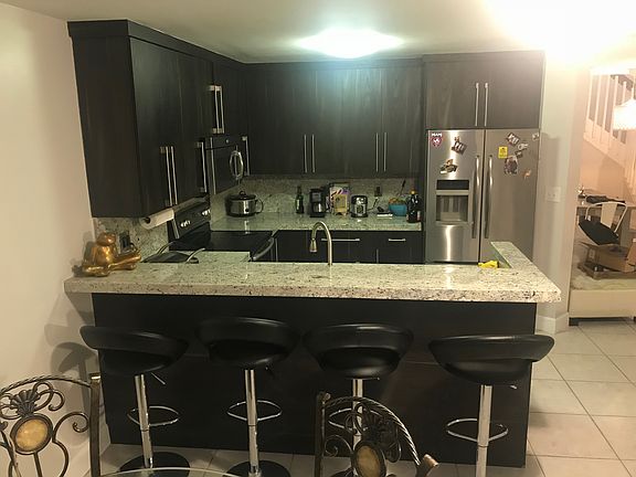 Beautiful and spacious Townhome, located in peaceful community Kendall Gate. The home is situated in a cul-de-sac with ample parking for up to 3 cars in front, and a 1 car garage. SIDE YARD WITH SPACE FOR A BOAT! As you enter the home you ll notice the large open layout including a spacious living room, dinning room, breakfast nook area, with upgraded kitchen and appliances. Once you find your way upstairs you ll see upgraded laminated wood floors throughout, with large bedrooms including access to the front balcony from one and walking closet. As you pass both bedrooms, and a beautifully upgraded bathroom you will enter the extra large master bedroom, which contains the largest walk in closet, huge additional bathroom with dual sink and glass enclosed shower with multiple rain style shower settings. Outside the home you can find a large covered terrace with dual fans perfect for entertaining along with a wide side yard enough to store a small car or boat.