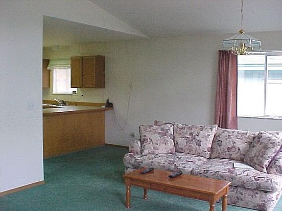 This beautfiul home is in exceptional condition. Vaulted ceiling in spacious living rm/dining area w/ wood fireplace. With white appliances and breakfast bar, there is also a pantry/laundry rm off the kitchen. The master bedroom is upstairs w/ large walk-in closet, along w/ a small deck and a shared bathroom. Two bedrooms downstairs and one bath.