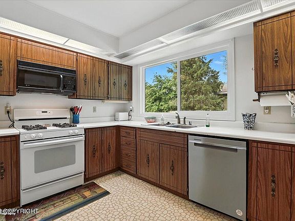 Located in desirable Chugach Foothills, this vintage tri-level home offers retro charm. Freshly painted interior, updated vinyl windows, kitchen pantry, fireplace, large Trex deck, wet bar in the family room, Arctic entry, and a master suite with walk in closet and full bath. Set on a quiet cul-de-sac with a fenced yard with roses, ferns, and raspberry bushes. 3 bedrooms upstairs plus a den down.