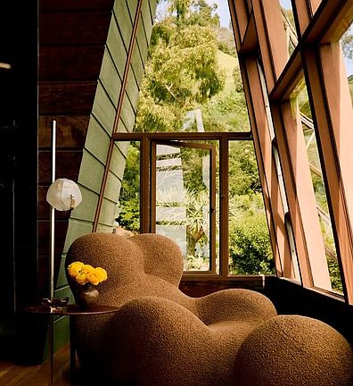 Tucked into the hills of Los Angeles, where architecture and landscape meet in perfect harmony, sits a home that is more than a residence it's a landmark. Welcome to 8661 Nash Drive, the very first architectural masterpiece by the legendary A. Quincy Jones, a name synonymous with postwar modernism, innovation, and timeless California design.Designed by Jones and his wife Ruth Schneider shortly after graduating from architecture school, the duplex-turned-personal-studio is as much a statement of vision as it is of form. Angled dramatically into the hillside, the structure maximizes western exposure and sunset views, creating dynamic, light-filled interiors defined by slanted walls, custom bookcases, and surprising spatial geometries. Jones would go on to become one of the most important architects of the 20th century collaborating with Paul R. Williams, shaping the Case Study House program, and pioneering modern residential subdivisions with Joseph Eichler. But it all began here.This is where vision took root. And today, it has been brought back to life in a way that is both reverent and revolutionary.The home has undergone a meticulous transformation under the discerning eye of designer Giampiero Tagliaferri, who has preserved its soul while enhancing it for a new generation of design lovers. The interiors feature rare and collectible mid-century furnishings from Italy, Brazil, France, and Denmark, woven seamlessly into a narrative of architectural purity and cultural sophistication.Signature A. Quincy Jones elements abound floor-to-ceiling window walls, a dramatic redbrick fireplace, and a tactile cork-clad feature wall design choices that would become iconic in the wave of modern homes that followed World War II. Every surface, every piece of furniture, every view has been curated with intentionality. In the dining room, a columnar travertine table designed by the owner anchors the space, surrounded by original Tecno chairs created by Giacomo and Osvaldo Gerli in the 1950s. The living room is grounded by a custom wool-and-silk rug from Atelier Fvrier, a built-in velvet sofa with a reflective sheen, and a Zeus table lamp by pioneering Italian architect Cini Boeri.Across from a pair of vintage Swan chairs clad in shearling sits a showstopping 1970s coffee table by Massimo Papiri, complete with an integrated bar and ice bucket the perfect symbol of modernist leisure and luxury.