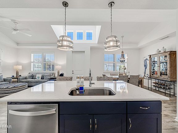Price drop and MOTIVATED SELLER!! Upgrades added after close, including LVP flooring throughout (yes everywhere!), plantation shutters, all new remote control ceiling fans and light fixtures. Will also consider to sell furniture if you need to move right in! With desirable end unit location, this Aloha cottage at Latitude Margaritaville Watersound features the largest floorplan of all the cottages. Beautiful upgrades include quartz countertops throughout, upgraded and soft-close cabinets, pull-out drawers, crown molding over the cabinets, double oven and more. The spacious layout provides a bright and welcoming atmosphere, perfect for relaxing and entertaining. Enjoy your screened in porch, an ideal spot for more relaxing, reading, or hosting a meal or beverage with friends and family. The home's location provides convenient access to street parking for guests, as well as easy in and out of the two-car garage. This home is ideally situated within the Latitude Margaritaville Watersound community, where you can enjoy exceptional amenities including HOA-maintained lawn care, a paradise pool with beach entry, cabanas, tiki huts, a restaurant and bar with panoramic views of the Intercoastal Waterway, a state-of-the-art fitness center, a 75' lap pool, pickleball and tennis courts, bocce ball courts, a kayak launch, dog park, and walking trails. The community also features golf cart and biking paths, a bandshell for concerts, and an exciting calendar of parties, games, and live music. For boating enthusiasts, a brand-new public marina will soon be available, with easy access to West Bay, Choctawhatchee Bay, and the Gulf waters. Just minutes from the beautiful Panama City Beach and the lively Pier Park for shopping and dining, this home offers the best of both relaxation and recreation. Whether you're enjoying quiet time at home or participating in the many community activities, this residence is the perfect space for both tranquility and excitement. Don't miss the chance to live in one of the most desirable 55+ communities around. Call today to schedule your showing!