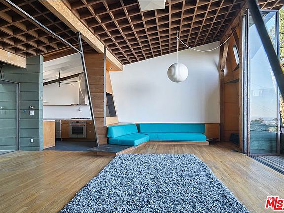 Tucked into the hills of Los Angeles, where architecture and landscape meet in perfect harmony, sits a home that is more than a residence it's a landmark. Welcome to 8663 Nash Drive, the very first architectural masterpiece by the legendary A. Quincy Jones, a name synonymous with postwar modernism, innovation, and timeless California design.Designed by Jones and his wife Ruth Schneider shortly after graduating from architecture school, the duplex-turned-personal-studio is as much a statement of vision as it is of form. Angled dramatically into the hillside, the structure maximizes western exposure and sunset views, creating dynamic, light-filled interiors defined by slanted walls, custom bookcases, and surprising spatial geometries. Jones would go on to become one of the most important architects of the 20th century collaborating with Paul R. Williams, shaping the Case Study House program, and pioneering modern residential subdivisions with Joseph Eichler. But it all began here.This is where vision took root. And today, it has been brought back to life in a way that is both reverent and revolutionary. This is the smaller of the two townhomes, both structures can be leased at $18,000/month
