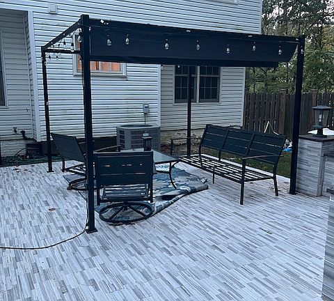 First house in the street in a great peaceful neighborhood. Right off of the Hooes Road exit on the Fairfax County Parkway. The house is actually bigger than it looks. It has two master bedrooms, there was a new addition on top of the garage to build the exquisite full size master bed room suite with a large size bathroom (pics of bathroom included, will add the bedroom pics soon). There is another old master bed room with attached bath that is standard for houses like these. A gigantic family room fully furnished with luxury sofas and carpet. Brand new appliances with white cabinetary and granite counter tops. Light yellow hardwood flooring in the kitchen and the living room. Spacious double car garage with tiled driveway with stairs. Beautiful stone patio with elegant light fixtures and covered backyard. This street is usually quite famous among the army families for it's close proximity to the Fort Belvoir and other access points. The furniture is brand new so i will be very careful in allowing pets.