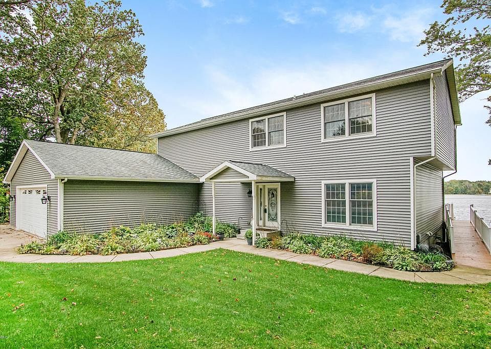 2-story with walkout finished basement to lake. 50' x 13' deck with screened in porch underneath deck to enjoy evenings without the bugs. New siding, backsplash, countertops, flooring and island added to kitchen along with molding on cabinets. Interior rooms newly painted.