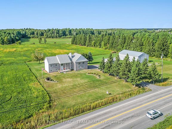 Country living meets endless possibilities in Navan! This rare property sits on 2.47 beautifully landscaped acres and is highlighted by a massive 40' x 72' outbuilding with a steel roof ideal for storing equipment, vehicles, or building the ultimate workshop, endless opportunities. The spacious High Ranch bungalow offers over 3,400 sq. ft. of finished living space with a layout designed for comfort and versatility. The main floor welcomes you with abundant natural light, 2 well-sized bedrooms, an oversized main bath with walk-in shower, jacuzzi tub and double sinks, a powder room, and main-floor laundry. A cozy wood burning fireplace anchors the living room, while the large sunroom provides a bright year-round retreat or family space. The kitchen opens to a sunny deck, perfect for morning coffee or BBQs overlooking the private yard. The fully finished lower level extends the living space with a complete in-law or nanny suite featuring 2 more bedrooms, a full bath, a large office, second kitchen, and walk-in pantry. Both levels connect directly to the oversized double garage. Beyond the workshop, a 14' x 22' shed with a 16' x 22' addition adds even more storage or project space. Just 20 minutes from downtown Ottawa, this property delivers the perfect blend of country charm and practical living.