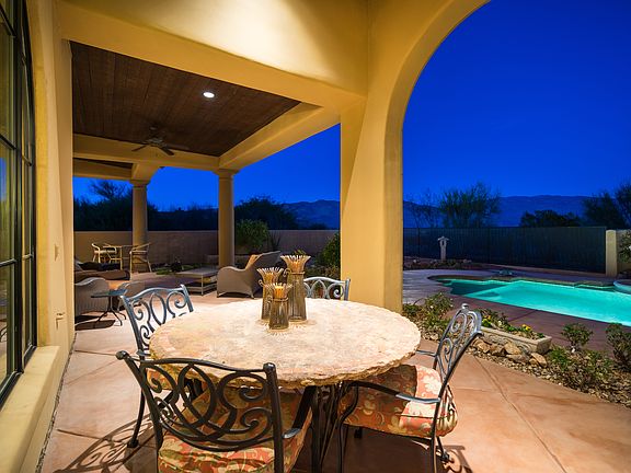 Be amazed by this creation from custom home builder Chris Kent. This exquisite home is thoughtfully situated to capture the majesty of the Rincons from inside and out. Attention to detail is an understatement, from intricate tray ceilings, arched windows w/ wood frames to 12-foot wrought iron/metal entry gate. Massive remodel completed 10/17. The grandeur of the living room is illuminated by natural light and punctuated by an impressive decorative concrete fireplace. The magnificent kitchen will make you think you are a Michelin Star chef with its impressive Wolf gas cooktop, granite slab counters, substantial center island, walk-in pantry, two dishwashers and two sinks. The backyard resort-like oasis showcases multiple patios, unobstructed views, and Pebble Tec pool.