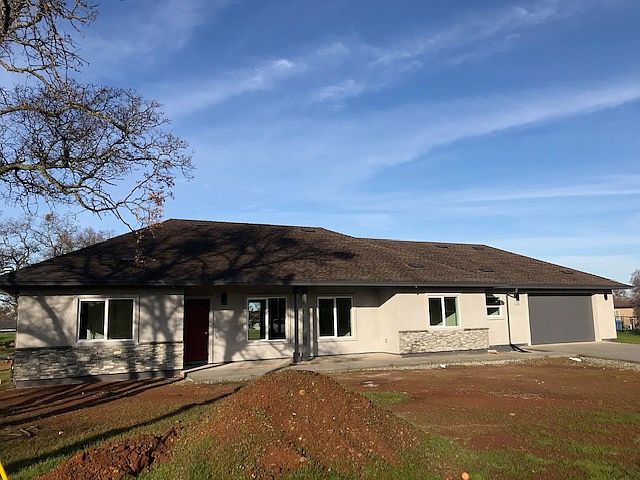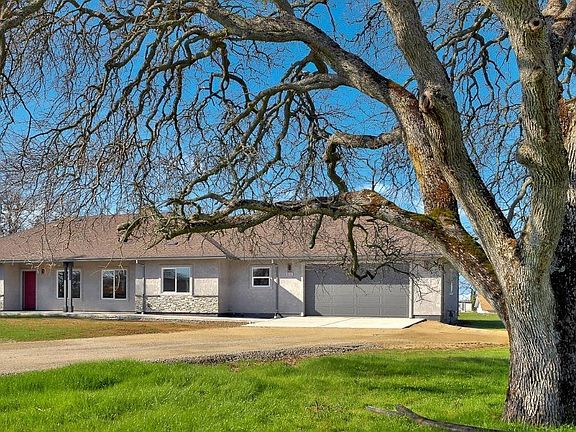 Perched on top of the hill, this brand new quality construction is sure to impress you. Prime all usable one acre lot with many oak trees and amazing sunset views from your large covered back patio plumbed for outdoor kitchen and BBQ. Contemporary energy efficient home features granite counter tops, crown molding, waterproof vinyl plank flooring, oil rubbed bronze hardware and fixtures, whole house fan, tank less water heater and LED lighting. The kitchen boasts a large granite topped island, Maytag SS appliances, SS farm sink, subway tile back splash and under cabinet lighting. Stylish barn door entry into the master bath with granite counter, double sinks, walk-in closet, large tile shower with two shower heads & glass enclosure. Hall bath has shower over tub with tile surround and granite counter, inside laundry room with sink and cabinetry. Over sized finished garage with car charger, stucco exterior with stone accent, 30 yr comp roof, RV parking and plenty of room for a pool or shop. Hard to find new quality construction on a prime lot in this area, call today to view this gorgeous home.