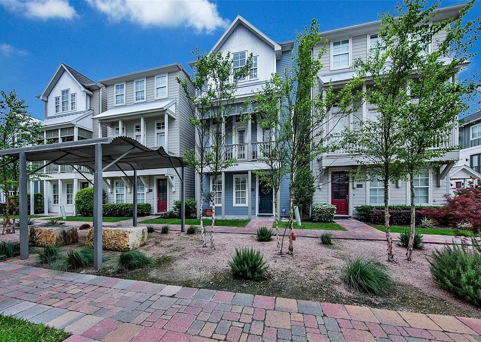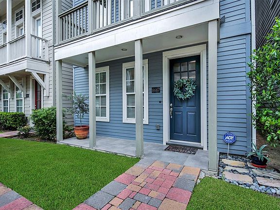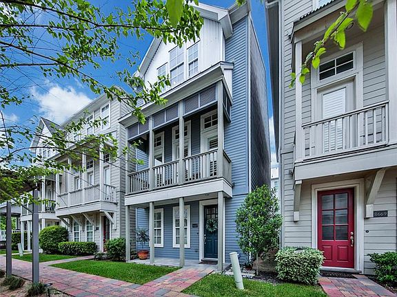 Spectacular coastal farmhouse tucked away in a tranquil courtyard location exudes Southern charm & regal elegance. Soaring ceilings, rich wood flooring, crown molding & modern grey color palette throughout. All bedrooms offer en-suite baths & spacious closets. Grand foyer w custom built-ins leads to attached two car garage. First floor guest suite. Expansive open concept second floor offers light filled views of the courtyard from the living room balcony. Gourmet island kitchen w walk in pantry, SS Bosch appliances & granite counters flows seamlessly to the dining & living room for entertaining. Third floor master is a true retreat w impressive his & her walk-in closets & incredible spa-like bath. Guest suite & laundry on the same level for convenience. This home offers the best of lock & leave convenience w no yard to maintain. Enjoy a manned gated resort style community w sparkling pool, lush grounds, guest parking, walking trails & dog park. No Flood History. Highly acclaimed SBISD!