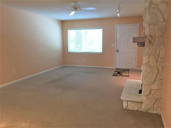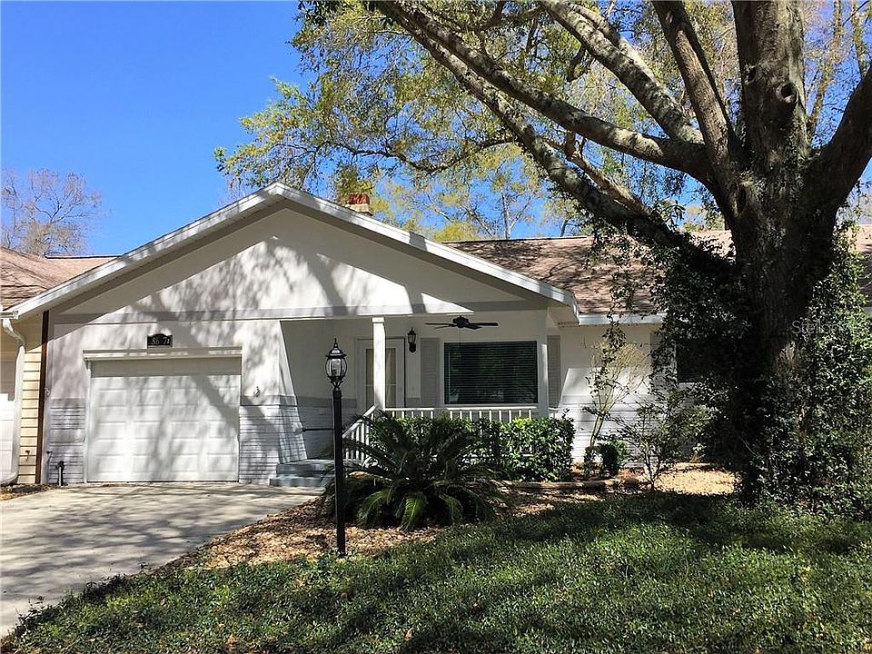 If you are looking for a lovely villa in a SUPER active 55+ community, this may be it! Not only does it have a park-setting across the street for you to enjoy from your front porch, but it even has a wood-burning fireplace in the living room!! The kitchen has been completely updated with new cabinet - complete with a lazy-Susan cabinet, granite countertops, and newer appliances. The master bathroom has also been totally updated including an updated step-in shower, new vanity with granite countertop, and even a vessel-style sink. The glass-enclosed lanai has updated windows and upgraded window shades to provide privacy. And a BIG PLUS is that the garage has been extended 10' longer than the typical garage, so it is 36' long - room for a workshop or to park a car and golfcart nose-to-tail. And to add another convenience, the driveway has been updated and is wide enough to park your golfcart on the side & still be able to drive your car in and out of the garage. Updates include: Roof (2019!!) - architectural shingles, too!, HVAC (2/2011), & Windows (1/2013). ALL of this in an active, gated, 55+ golf-course community with tons of recreational facilities to use and things to do! And this home is located handily near the community entrance so you're close to TWO shopping centers located just outside the front gate - both accessible by golfcart if you'd prefer - offering store, restaurants, a post-office annex, banks, and more! Everything that you are looking for is here!