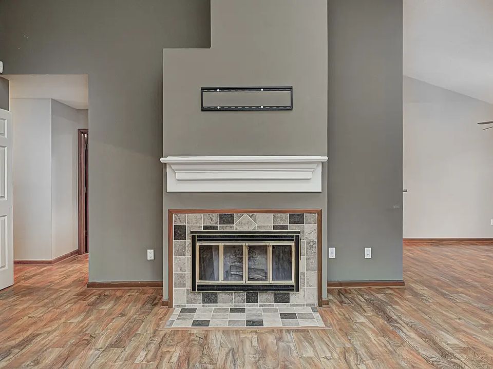 Cozy gas log fireplaceVaulted great roomSpacious primary suiteBonus roomJacuzzi-style tubPatio with pergolaCeiling fan