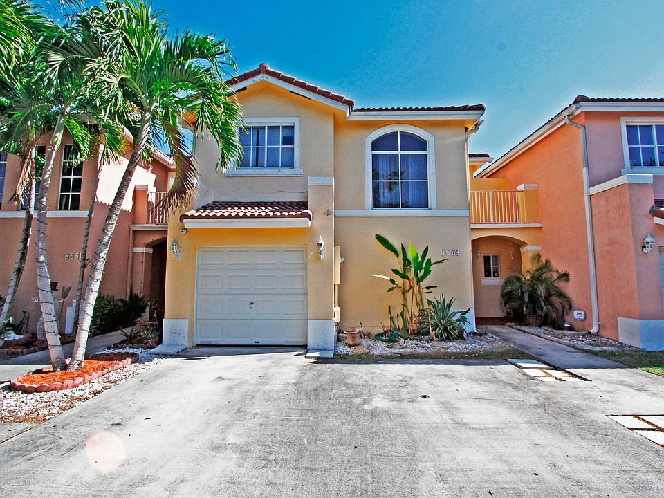 Beautiful Kendall Gate two story home, 3 bedroom 2.5 bath with 1 car garage in a safe family friendly and gated community, near excellent schools, shopping, transportation, and hospital. This ample home has 1,800 sq. ft. of living area. All bedrooms are of larger size than usual and located upstairs. Spacious master bath with double sink. Walk-in closet. Large patio to entertain friends and family with private exit to a large community garden. Very well-kept unit. Back closet for additional storage. One of the lowest HOA fees of $70/month.