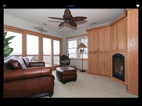Enjoy your stunning sunrise every morning from your master bedroom, upper deck, living room, sunroom or kitchen! Spectacular views looking East on 2nd lake. We offer 1 bedroom on the main floor, living room w/gas fireplace, beautiful 3 season porch, dock, main floor bath. Kitchen offers granite tops, dishwasher, breakfast bar, dining room. Upper level offers 1 bedroom, den looking at lake along w/upper level deck. Master bedroom upstairs offers whirlpool tub jacuzzi along with heated bathroom floor. We offer an oversize 3 car heated garage with a drive-through stall to get your watercraft to the lake. Great garage with painted floor. Lakeside offers a built-in barbeque with counterspace along with a deck for your evening cook-outs. Do not let the size fool you, the home is laid out extremely well throughout for that "at the lake" feel.
