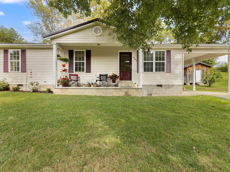This beautifully renovated 2-bedroom, 1-bath home (with potential for a 3rd bedroom) offers the perfect blend of style, comfort, and convenience. Step inside to find brand-new kitchen cabinets, countertops, and appliances, fresh paint throughout, and durable LVP flooring. The expanded bathroom is a true retreat, featuring a fully tiled shower, tile flooring, and a freestanding soaking tub for ultimate relaxation. Outside, enjoy the fresh landscaping, covered porch, and attached carport, all sitting on nearly an acre in a peaceful setting — just 2 miles from Highway 30. You'll love the location: 30 minutes to Natural Bridge State Park, 30 minutes to London, and just 1 hour to Richmond — giving you easy access to outdoor adventures, shopping, and dining. This single-level, turnkey home is move-in ready and waiting for its new owner. Don't miss your chance to make it yours — schedule your private showing today!