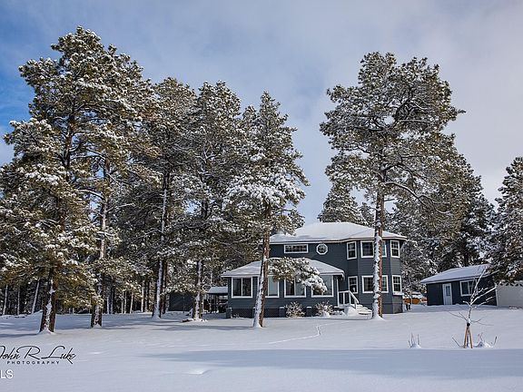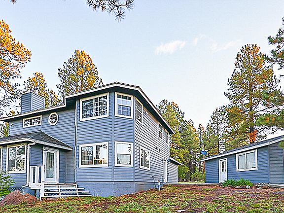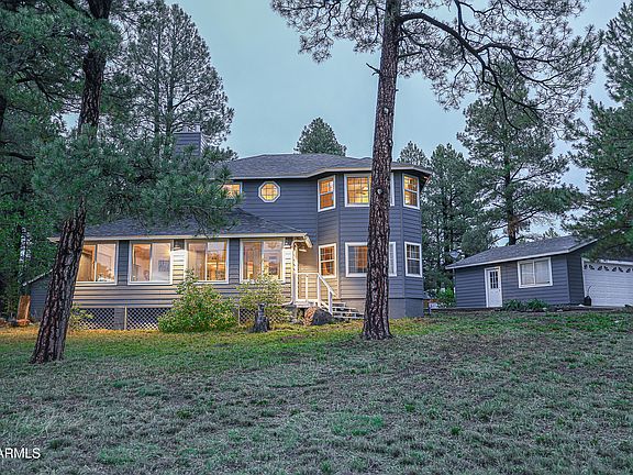 Nestled among majestic Ponderosa pines on over an acre, this beautifully maintained 2-bdrm, 2-bath hm shows like a model with extensive updates throughout. Upgraded Kitchen w/stainless steel appliances, custom copper color decor that opens to spacious liv rm w/cozy warm fireplace. Thoughtfully designed with comfort and style in mind, the open floor plan offers seamless indoor-outdoor living, ideal for relaxing or entertaining. Enjoy year-round water, a rare find in the area, and the peace and privacy of a forested setting. 2 Car detached garage, 2019 roof, 2023 exterior paint and 24 KW Generac Emergency Generator with 10-year warranty. Whether you're seeking a full-time residence, vacation retreat, or investment opportunity, this property is a perfect escape just minutes from Lake Mary.
