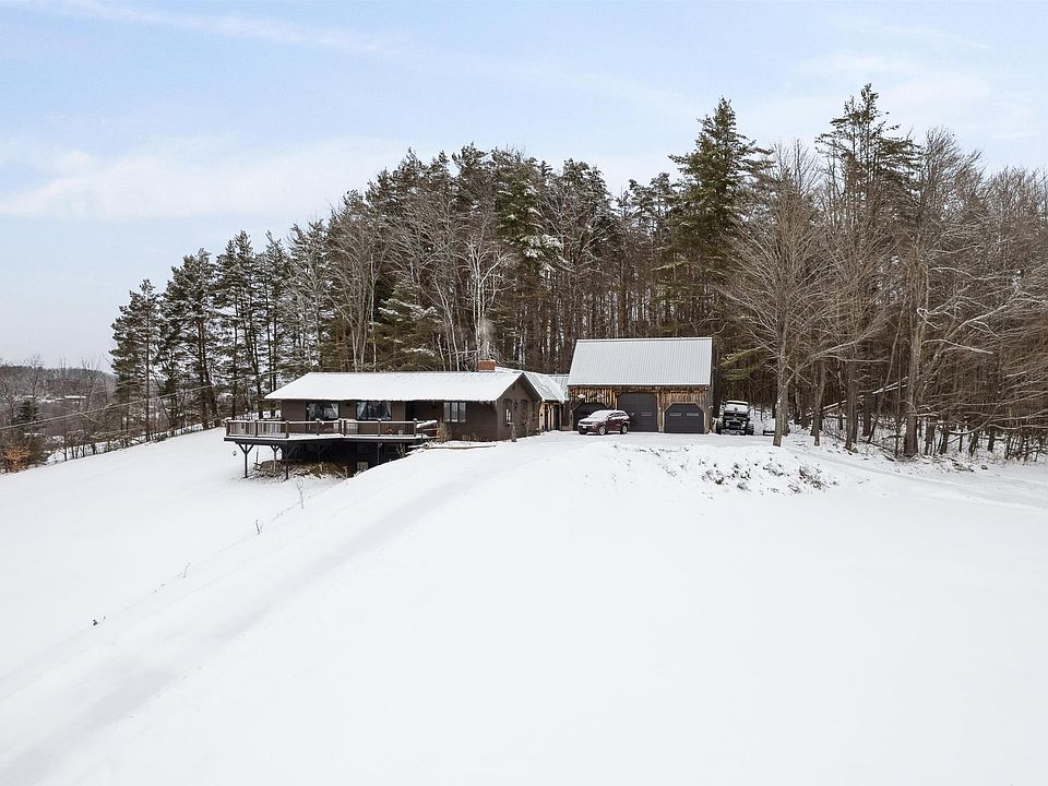 Check out those views! Breathtaking 270 degree views of the mountains from this lovely property perched on the hill. The heart of Randolph - surrounded by picturesque rolling hills and views of Killington and Pico directly from the house. With 17+ acres, you have plenty of room to garden, have animals, subdivide if you wish or simply enjoy the buffer of space. This is easily accessed via a town maintained paved road with downtown Randolph and I-89 only minutes away. The garage has 3 bays (1 is fully insulated and heated) and a huge office space/man-cave/bonus room that is perfect for spillover guests or a devoted work-from-home space. The driveway is over sized and sweeps around so plowing is made super simple. If you want multi-generational living with a separate entrance? The walkout basement has a living room, kitchen and bonus space for guests or rental potential. The upstairs living room is sunny and bright with a slider walking out to the composite deck with gorgeous views! While town records list the home as a one-bedroom, one-bath residence, the seller has used it as a 4-bedroom, two-bath property with a studio/office space. Only ~30 minutes from Montpelier and 45 minutes from West Lebanon, this property presents a wide variety of uses for those creative minds who want the tranquility of a mountain view.