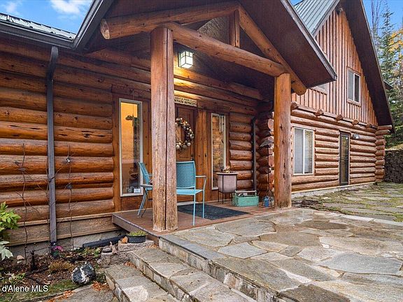 Meticulously maintained waterfront log home on Coeur d'Alene Lake with over 3,300 SF of inviting living space and 2 Master Suites. This 3 bed, 3.5 bath retreat features original wood floors, soaring ceilings, formal dining, and two cozy propane fireplaces. The romantic main floor primary suite offers privacy and comfort. Expansive windows and multiple decks totaling 900 SF capture panoramic lake and mountain views from every level. Enjoy a beautifully crafted private dock, perfect for boating or relaxing lakeside. Thoughtful details include driplines for deckside flowers, jetted tub, and a fully finished basement. Nestled in a quiet neighborhood on a 0.66 acre lot with an attached 2 car garage, paved RV parking, and community water. A rare blend of rustic charm and modern comfort, ideal for a serene getaway or high demand Airbnb investment.