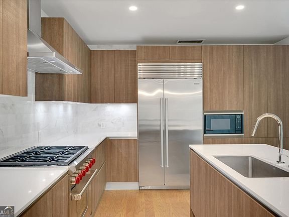 Experience luxury city living in this expansive 3-bedroom, 3-bath corner residence in Seventh Midtown, one of Atlanta's premier boutique condominiums. Boasting a large floor plan on a single level, with only 3 units per floor, this residence offers high 10-foot coffered ceilings, floor to ceiling windows, and rich hardwood flooring throughout. Featuring exceptional indoor/outdoor interface, a spacious living room, a dining area that seats 12, and a chef's kitchen with solid surface counters, an eat-in island, Pedini cabinetry, and premium Wolf and Sub-Zero appliances, the entire unit is designed for comfort and accessibility. The home includes wide hallways, elevator access, and oversized, split-bedroom layout. The primary suite is a true retreat with an en-suite bath, double vanities, soaking tube, frameless shower and custom walk-in closet. Additional highlights include a wet bar, insulated windows, Waterworks fixtures, and laundry room. Enjoy private outdoor space on your covered balcony, a large, conditioned private storage room, and the convenience of two assigned garage parking spaces with secure access. Located in a gated building with attentive concierge services, 24-hour security, residents enjoy access to a full-service business center and resort-style amenities including a skyline saltwater pool, state-of-the-art fitness center, clubroom, billiards, and private screening lounges. With easy access to MARTA, dining, shopping, Piedmont Park and the Beltline, HOA dues cover nearly everything else. All of this in a showcase building of only 20 residences for unparalleled privacy, luxury, and walkability in the heart of Midtown.
