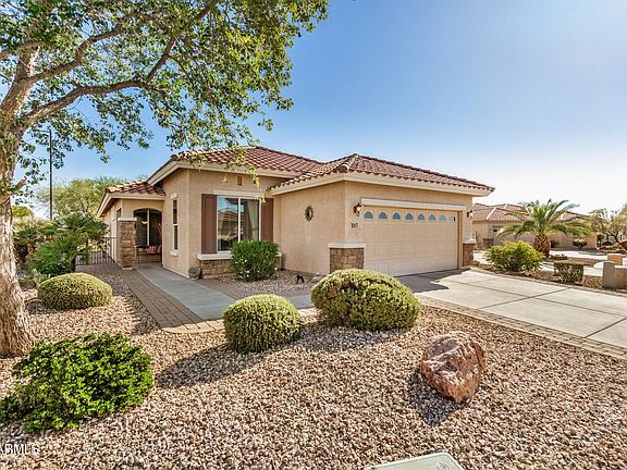 A very special home. Beautiful decor and an entertainer's delight home and yard with no rear neighbors. This amazing snowbird home comes fully furnished, and the golf cart is negotiable.