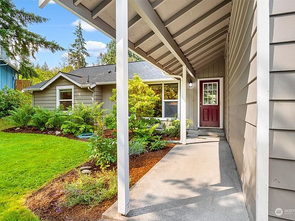 Discover your dream home in Woodbine Estates! This impeccably maintained single-level home offers 3 bedrooms, 2.5 baths, and an office, providing ample space for work and relaxation. Enjoy the seamless layout connecting the living room, kitchen, dining, and family room, perfect for entertaining. The updated kitchen boasts custom cabinets, SS appliances, granite countertops, gas range, eating bar, and under-cabinet lighting. Relax by the cozy fireplace, adding warmth and charm to the living space. This move-in-ready, low-maintenance home features fresh interior paint, a recently painted exterior, and a newer roof. Mature landscaping ensures privacy, while the location just outside city limits provides easy access to Lakeway and Lake Padden.