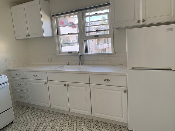 Upper one bedroom unit in smaller, quiet, charming building. Cozy space with a tree house feel, sunporch, and hardwood floors. Bright and cheerful unit with grassy courtyard. Comes with garage. Close to beach, walk to village.