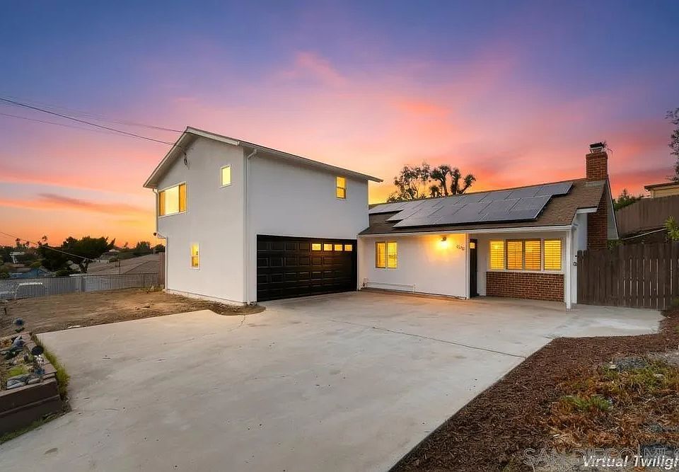 La Mesa Gem! This beautifully renovated home sits on a large, private lot and offers an exceptional blend of modern comfort and timeless style. Equipped with solar and a soft water system, this property features a sparkling pool, outdoor gas fire pit, and ample private parking. Inside, enjoy a thoughtfully remodeled interior showcasing new LVP flooring and baseboards, fresh interior and exterior paint, upgraded bathrooms with new fixtures, and recessed lighting throughout. The kitchen has been fully updated with granite countertops, stainless steel appliances, and upgraded cabinetry. The backyard oasis is perfect for entertaining, complete with a refinished pool, newly built brick gas fire pit, and mature landscaping. Additional exterior improvements include new gutters, freshly painted fencing, re-stained concrete surfaces, and a fully refurbished pool finish. This home features two primary suites, including an expansive upstairs retreat with exposed wood beams, walk-in closet, dual sinks, and a private thermostat. A true turnkey property, this La Mesa residence delivers style, efficiency, and comfort throughout.