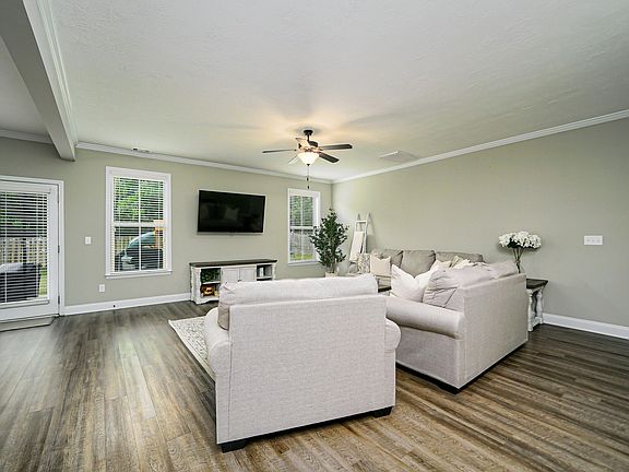 Welcome to Hidden Creek! The Kendall plan by South Georgia Homes features 3414 sq ft of living space which includes 4 bedrooms, 3 full baths, a 3 car garage, and an oversized loft area upstairs. You are greeted by the rocking chair front porch and welcomed into this home with a 2 story foyer, formal dining room or office, and the living room. The main level has a guest bedroom and full bath, plus a mud room with direct access to the 3-car garage. The large family room features tons of natural light. The family room opens up into the breakfast room and a large kitchen, with a walk-in pantry as well as a secondary pantry. The kitchen has granite counter tops, backsplash, and stainless-steel appliances. The upper level has 2 additional bedrooms with a shared bathroom, laundry room, oversized open loft area, and the primary suite! The primary suite features beautiful ceramic tile, a double vanity, separate tub & shower, private water closet, and spacious walk-in closet. The backyard is fenced in. Hidden Creek features walking trails, a playground, club house, and a swimming pool.
