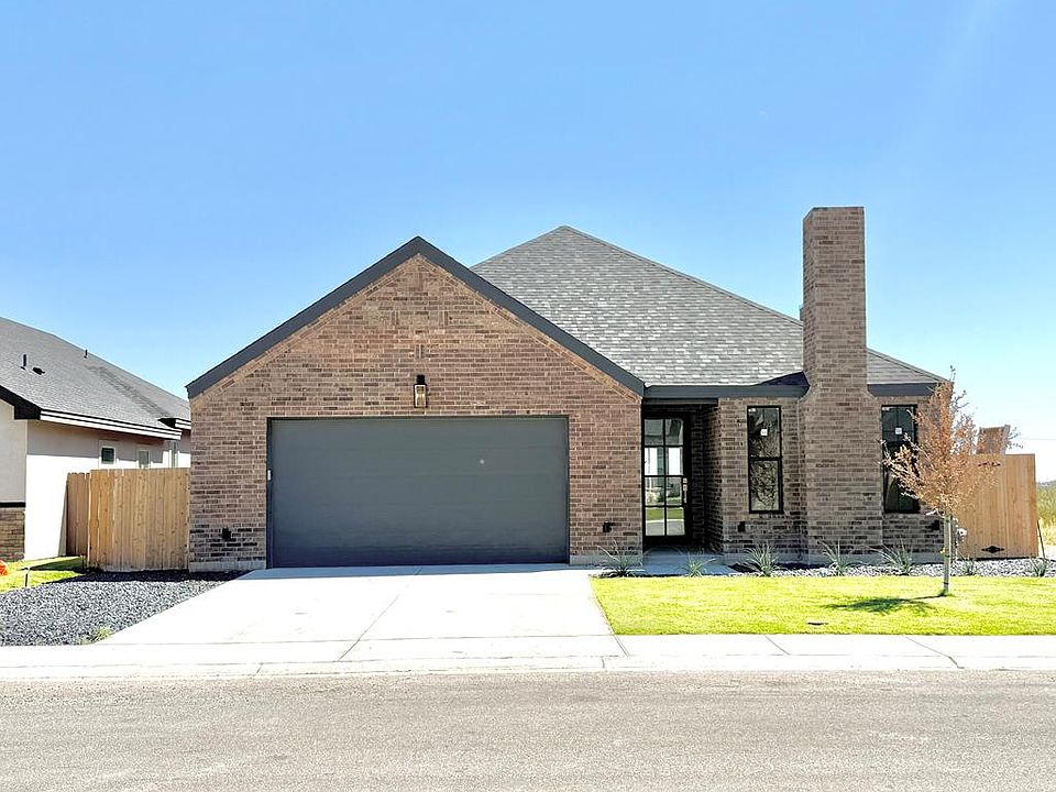 Beautiful new build with an expansive brick exterior paired with textured shingles, a custom 8' iron door, foam insulation, front/back sprinkler system, a 16' x 8' garage door. Inside, enjoy vinyl flooring and tile throughout, 6” baseboards, solid wood cabinets with Top Knob hardware. The kitchen highlights a white oak island and designer lighting, while bathrooms feature elegant 1x2 porcelain tile and Delta fixtures. 3x12” polished ceramic tile and 8' interior doors for a modern, upscale finish