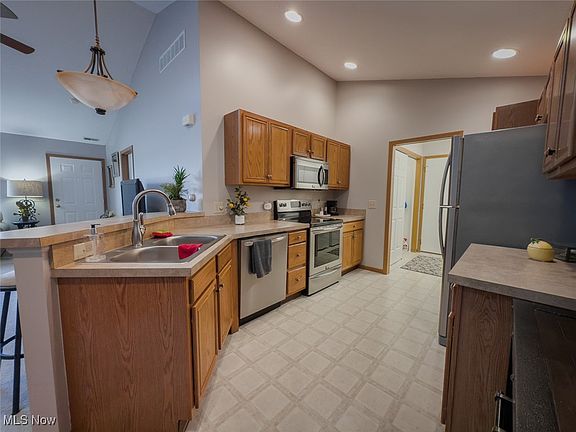 The open-concept great room with vaulted ceiling flows seamlessly into the dining area and kitchen, creating the perfect space for entertaining. The kitchen is complete with newer stainless steel appliances, breakfast bar, pantry, and a convenient laundry room just steps away. A new hot water heater adds peace of mind.