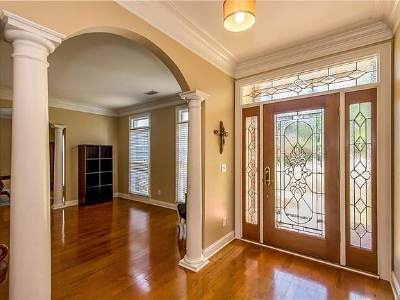 Beautifully maintained custom built home is a private gated community. Quality workmanship throughout in this 4 bedroom, 2.5 bath one story home. Hardwood floors in the formal living room, dining room, and foyer. Tile in the kitchen and breakfast room with tile back splash. Crown molding throughout with triple crown molding in the foyer and living room. Large family room with double trey ceiling, double French doors to the covered porch. Large main suite with 2 walk in closets. ( one closet is a SAFE ROOM for storms and to lock valuables.) Exquisite main bath with a garden tub, separate shower, and separate vanities. A large mud room off the carport.