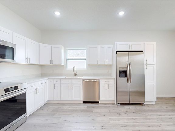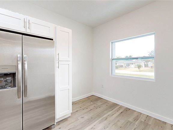 2025 built CBS home with 3bed, 2baths & 2car garage. ALL impact windows & doors. This split floorplan home offers a beautiful kitchen with SS Frigidaire appliances-including a 5 burner stove & airfry microwave, quartz countertops, pantry +breakfast nook. The GREAT room has ample space for living and dining or whatever might fit your lifestyle. Vinyl floors throughout, recessed lighting + 9'4" ceilings. Primary bedroom offers walk in closet, dual sinks + a large step in shower. Garage includes pull down attic storage. Water filtration system and just 2nd house from paved street. HOME WARRANTY