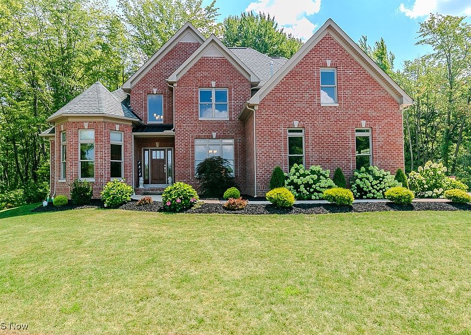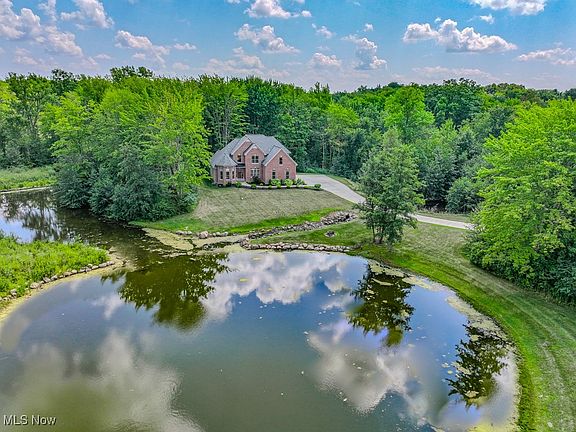Welcome to this breath taking home located in Chardon Township. As you enter the long concrete drive you will be greeted with a large, landscaped pond and firepit for those star-gazing nights. As you enter this brick front home and custom front door, you walk into cathedral living area. Master bedroom on the left with custom ceiling and large welcoming windows. Walking into master bath you will pass two separate walk-in closets. Two sinks and vanities across from each other with a soaking tub, separate glass and tile shower. The toilet with a bidet in the water closet. If you take a right from foyer, you will enter the dining area. If you go straight, you can walk up the wooden stairs to the second floor or enter the inviting family area with gas fireplace. The kitchen has a breakfast bar and an eat in kitchen area or you can enjoy the brand new Trex deck (2025) overlooking the wooded back yard. Granite counters, stainless appliances, soft close drawers, closet pantry, wide cabinets and ample drawers for storage. Down the hall you will arrive at more closet storage, laundry room with sink and cabinets. There is a bedroom with an attached bath that can also be accessed from the hall. This could double as a private office. Upstairs you will find 2 more bedrooms and a jack and jill full bathroom. Over the garage is a bonus room/bedroom with access to ample storage with insulated doors. The downstairs features a bar with a mini fridge and pool /ping pong table. There is also an egress window for safety. This home also has custom wood blinds, floating premium floor, Kinetico system. Make your appointment today to see this elegant home. Blueprints are available.