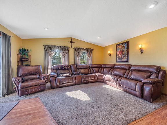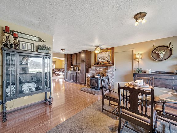 Beautiful mountain views from this charming ranch style home & .34 acre lot. The heart of the home is the big kitchen w/ample storage, granite counters, & an amazing custom built Coffee Bar/Hutch. It has 3 comfortable bedrooms & 2 baths, along with an additional office space perfect for working from home. The main suite has a Jacuzzi spa tub w/tile surround. 3rd bedroom has Murphy bed & currently doubles as an exercise room. Utility room has floor to ceiling storage w/ beautiful barn door feature. There's a 40 x 40 Quonset style shop, w/water, power, half bath & cold room ready to finish to suite your needs. The fully fenced yard is complete with a patio, raised garden beds, established fruit trees, & is fully fenced. Newer upgraded oversize septic system, w/1500 gal 2 compartment tank.
