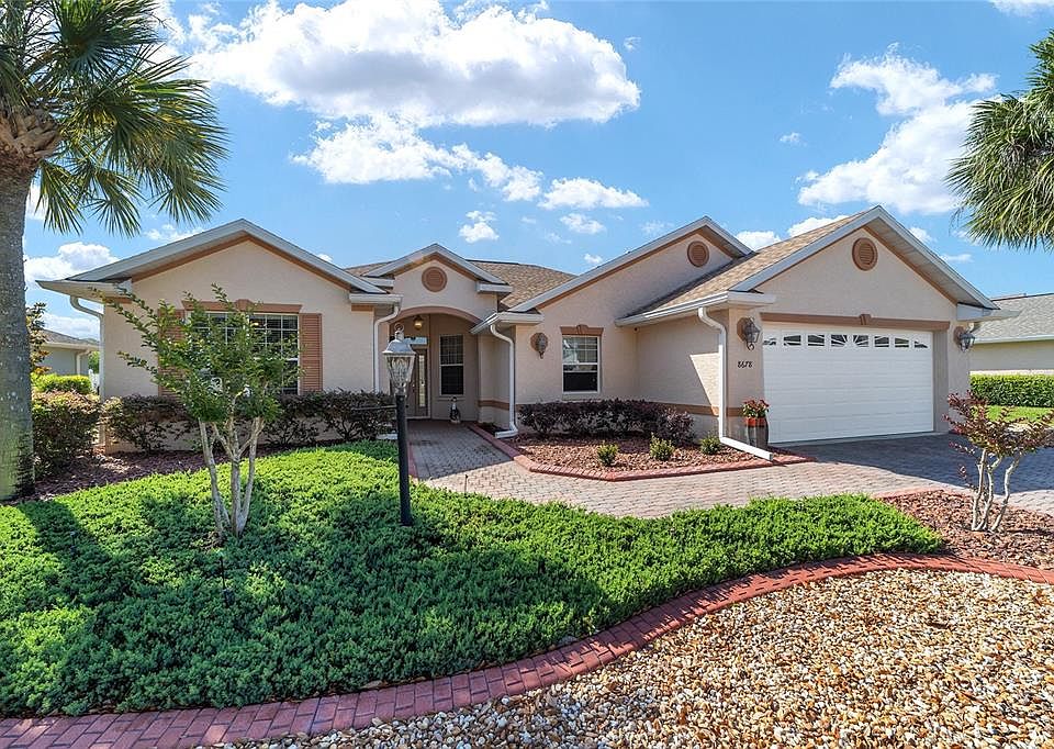 Charming Ayreshire II in Candler Hills – On Top of the World! Welcome to this beautifully maintained 3-bedroom, 2-bathroom Ayreshire II located in the highly sought-after 55+ community. Thoughtfully updated and move-in ready, this home offers both comfort and peace of mind with key upgrades throughout. Step inside to find new luxury vinyl plank (LVP) flooring in the foyer, dining room, living room, and hallway – combining style and durability. The spacious, floor plan is perfect for entertaining or simply enjoying a relaxed Florida lifestyle. You'll love the large screened lanai, ideal for outdoor living, complete with a natural gas hook-up for your grill – perfect for weekend cookouts. The electric stove in the kitchen also features a gas hook-up option, offering flexibility for the home chef. Major systems have already been updated for your convenience: New roof in 2022, Hot water heater replaced in 2023 and Upgraded HVAC system in 2020. The spacious primary suite includes a walk-in shower with a built-in bench, providing both comfort and functionality. There's also an extra golf cart garage, giving you all the space you need for your cart, hobbies, or additional storage. Located in a premier gated community with access to world-class amenities including golf, fitness centers, pools, and social clubs, this home offers the perfect combination of modern updates and active adult living.