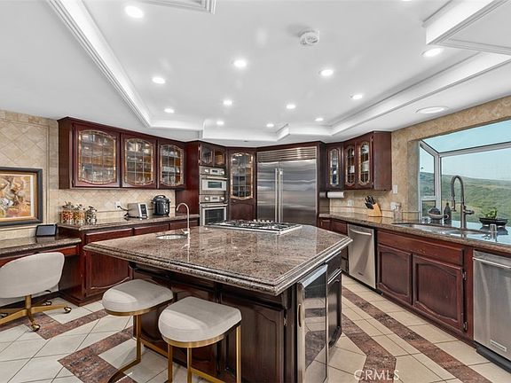 This stunning Traditional 5 bedroom and 4.5 bath home with 3 car garage has all the goodies. Brand New AC systems were just installed. This home is the ultimate in coastal living with canyon ,hills and a pee-a-boo ocean sunset ocean view. Situated on a hilltop 1.4 acre lot. Kitchen is fit for the chef with all professional grade stainless commercial appliances and large center island. Home comes fully furnished and is ready for immediate occupancy. Home has a separate downstairs bedroom ideal for older family members or kid come home. Comes with both washer and dryer. 4 of the five bedrooms are ensuite. Has oversized family room with fireplace and a bar room area also having fireplace. Home has an indoor jacuzzi tub that leads out to a deck that runs the entire length of the home. All newer restoration hardware patio furniture, heat lamps, BBQ, and fridge. Please call to see this amazing home.