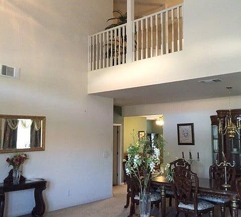 Huge 2 story home on corner lot. Double front doors. Soaring ceilings in living room and formal dining area. Open kitchen with center island and stainless steel appliances. Family room with ceiling fan and fireplace. Indoor laundry with utility sink. Downstairs has a bedroom and full bathroom with entry for guests and from bedroom. There is a double door to master bedroom and it has a ceiling fan and walk in closet. Master bath includes a separate shower, nice soaking tub and double sinks. This floor plan also includes a bonus room. Bathroom #3 has a tub/shower combo and double sinks. This home also comes with a whole house fan. There are many fruit trees and extra concrete in backyard. All this located near River Valley High School and many retail stores.