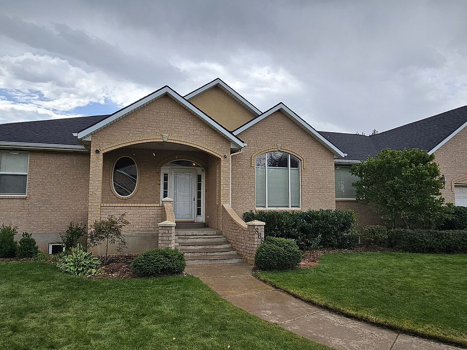 This home presents an exceptional opportunity to live in a desirable East Mapleton neighborhood. Situated on a tranquil street, the expansive .34-acre lot features impressive mountain views. Offering 4,489 square feet of finished living space, this home features six bedrooms, four full bathrooms, and a half bathroom, presenting extensive flexibility for customization. The main level welcomes you with airy 9-foot ceilings, a primary suite, sunlit open-concept kitchen, nook, and family room, a dedicated office and sunroom, additional bedroom, and bathroom. Complementing these areas, the formal dining and living rooms offer versatile spaces suitable for both everyday life and special occasions. The lower-level walkout apartment offers a thoughtfully designed living space with its own private entrance, kitchen, living room, dining area, bedroom, full bathroom, and walk-in closet. For added versatility, double doors seamlessly connect the apartment to the large family room and the remainder of the lower level, creating a flexible environment that can be tailored to suit a wide range of needs. Ideal for rental income or multi-generational accommodations. Step out onto the large deck, perfect for outdoor dining and entertaining while enjoying the beautiful views. The property includes a small, well-established orchard, a garden area ready for your favorite vegetables and flowers, and thriving grapevines and berry bushes, offering a bounty of fresh produce throughout the season. A seasonal irrigation ditch serves the property, ensuring reliable access to water. The oversized 735 square foot garage has space for a workshop and to store all the gear and equipment for your family. The house is equipped with a standby generator and a 250-gallon propane tank.