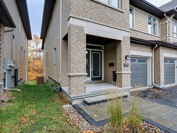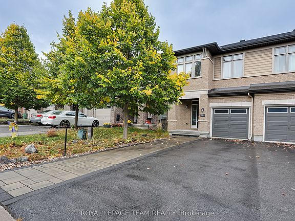 Welcome to this elegant and contemporary 3-bedroom, 2.5-bath Addison model end-unit townhome in prestigious Kanata Lakes - a residence that blends functionality, comfort, and charm in one beautiful package. The highlight of this home is the bright walk-out basement, expanding your living space and leading to a private, fully fenced backyard where you can relax, garden, or entertain under open skies. From the moment you arrive, the widened interlock driveway, tasteful brick exterior, single-car garage, and neat front entry create a polished first impression, offering 1+4 total parking spaces for added convenience. Inside, the main floor greets you with an open-concept layout featuring hardwood flooring, large windows, and a cozy gas fireplace that anchors the living and dining areas beneath a vaulted ceiling. The kitchen offers both style and efficiency with tile flooring, a breakfast bar, generous cabinetry, and a sunny eating nook that opens to a charming Juliette balcony - perfect for morning coffee. Upstairs, the spacious primary bedroom includes a walk-in closet and spa-inspired ensuite, while two additional bedrooms share a bright full bath. A convenient laundry closet completes this level for modern everyday ease. The finished lower level adds remarkable versatility - ideal as a recreation room, home gym, or office - with patio doors opening directly to the backyard, creating a seamless indoor-outdoor flow. With a fenced yard for privacy, central A/C, and garage entry access, this home is fully equipped for comfortable living. Set in a quiet, family-friendly community near top-rated schools, parks, golf courses, and the Kanata High Tech Park, plus just minutes from shops, restaurants, and transit, it offers the perfect balance of tranquillity and convenience. Stylish, well-maintained, and move-in ready - this is the one you've been waiting for.